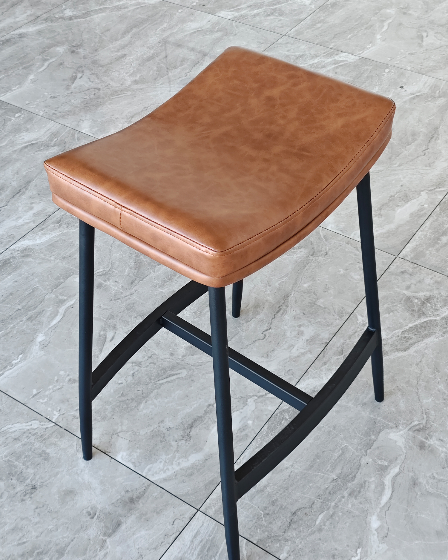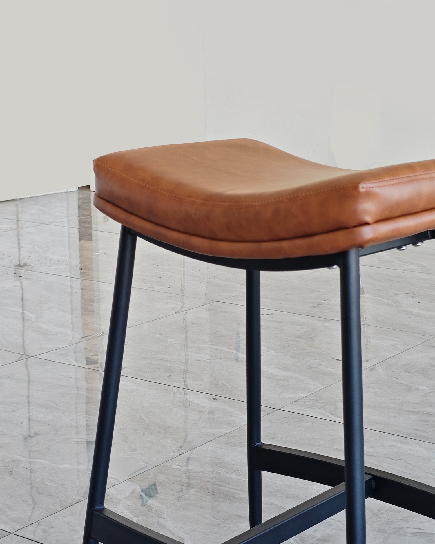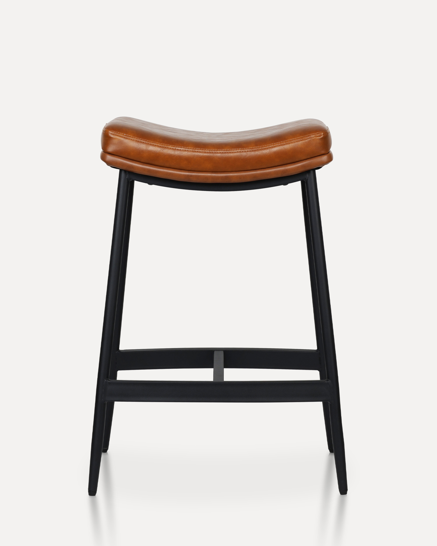 • Denne afføring kanaliserer energien fra vintage barer og moderne lofts, der er rodfæstet i industrielle chic og tidløse læderfartøjer. Dens sadelformede sæde fremkalder komforten ved en godt slidt læder lænestol.
