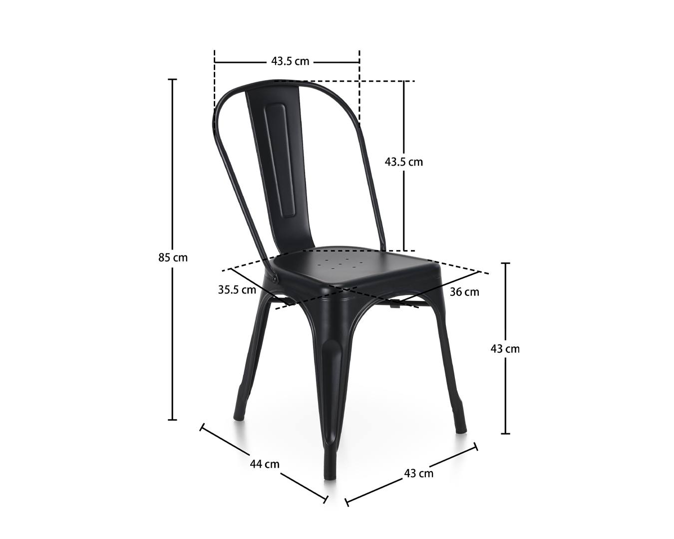 • Denne stol er en fejring af industrielt design med en robust sort jernramme, der taler bind om dens holdbarhed og styrke. Det perforerede sæde tilføjer ikke kun en markant visuel appel, men sikrer også åndbarhed, hvilket gør det behageligt til langvarig brug.