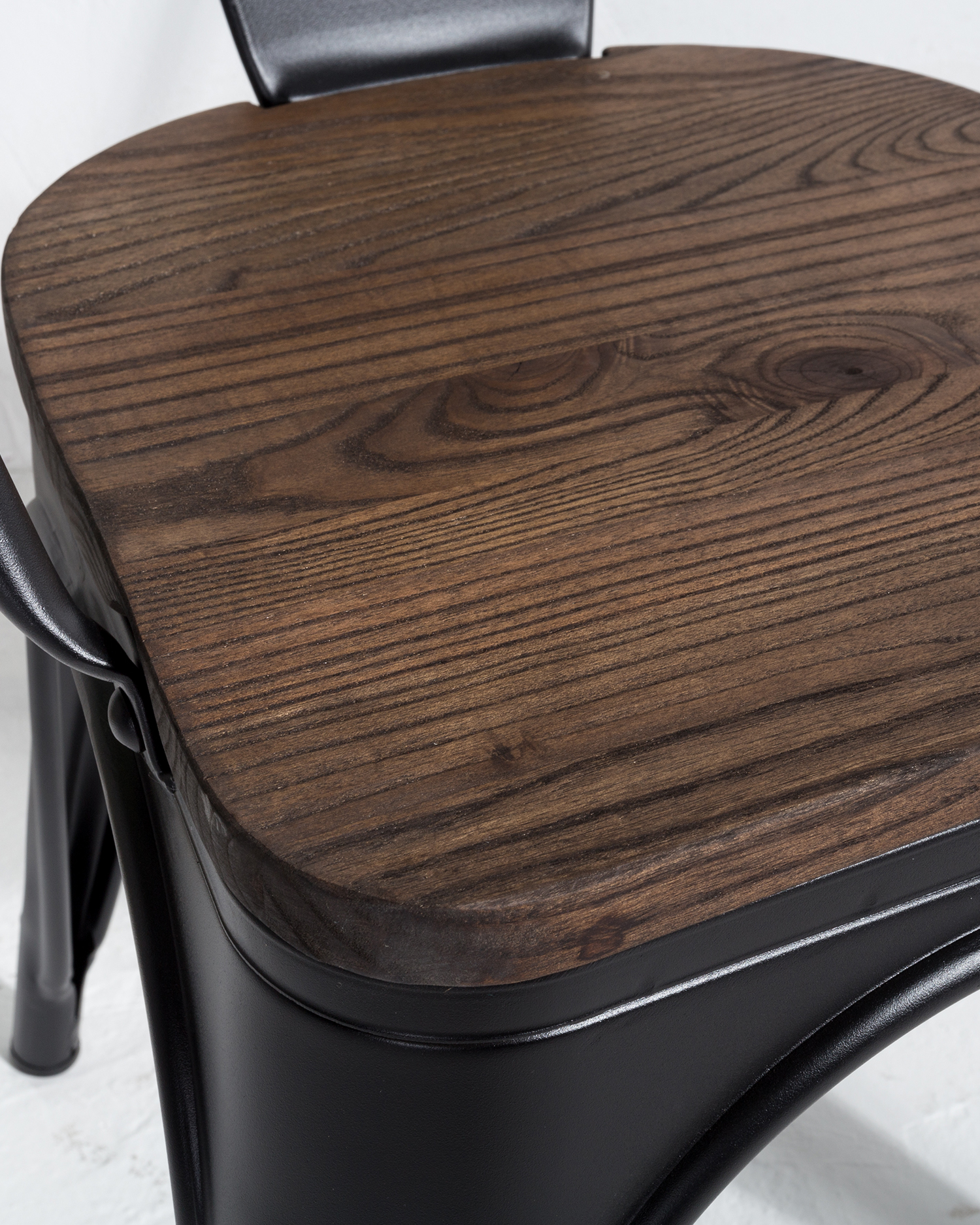 Hjem / Produkter / Designstol / Industriel jernstol træ sæde