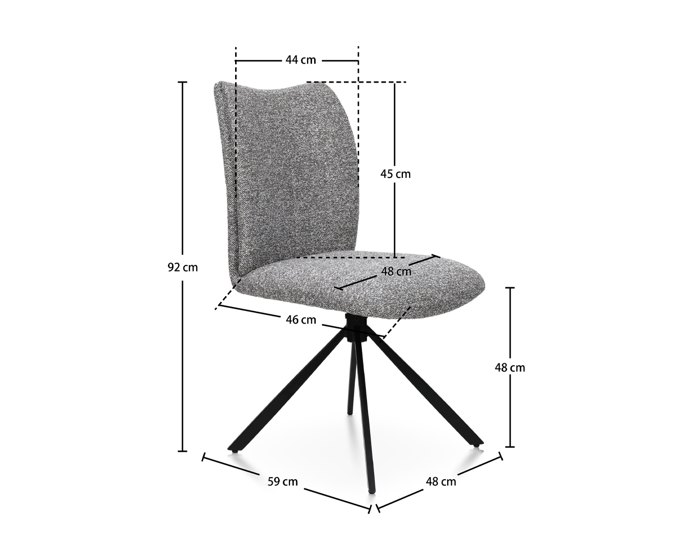 • Designet med slanke linjer og sofistikeret stof bringer denne stol et forfriskende, minimalistisk touch til enhver spiseplads. Den drejelige funktion tilføjer alsidighed og lethed, hvilket giver mulighed for glat bevægelse, mens du nyder måltider eller samtaler.