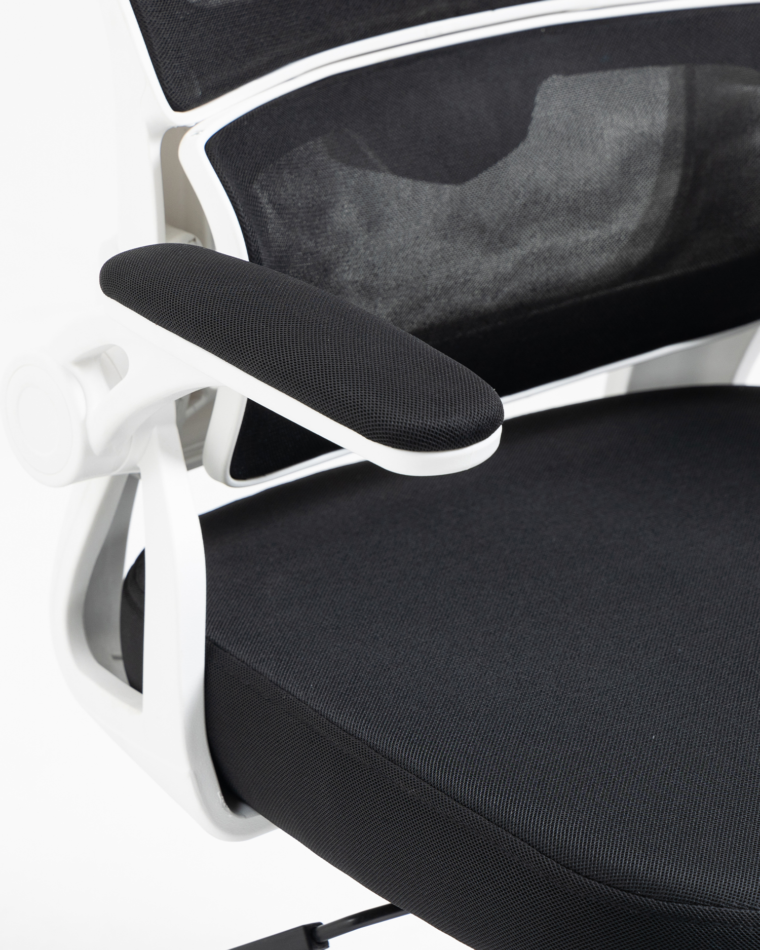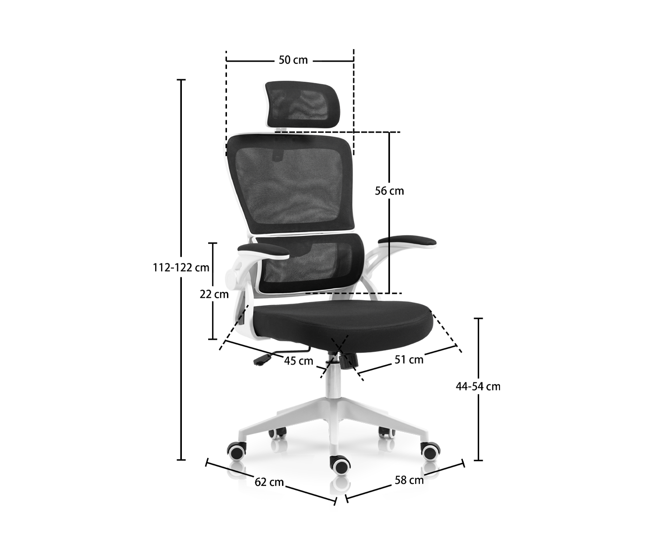 • Denne kontorstol kan prale af et slående hvidt og sort farveskema med et unikt design, der supplerer enhver moderne kontorindretning. Udstyret med justerbare armlæn, giver denne stol dig mulighed for at tilpasse dine arme placering for optimal komfort. Armlænene kan flyttes op eller ned og kan også justeres til vinkel indad eller udad, hvilket sikrer, at dine arme understøttes i den mest naturlige position.
