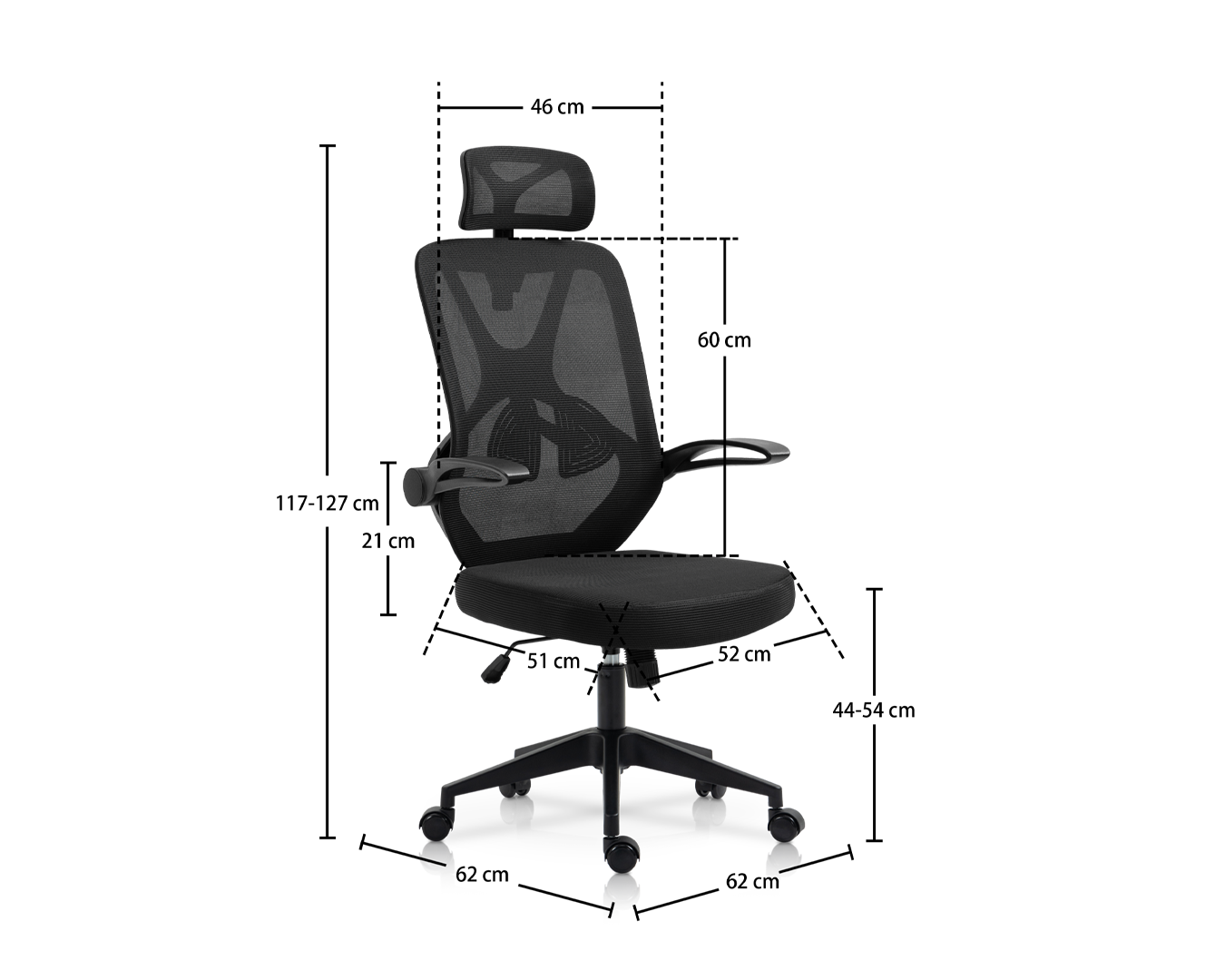 • Ergonomi er kernen i denne stols design. Har en slank sort mesh -ryglæn, der sikrer fremragende åndbarhed, hvilket holder dig kølig og behagelig hele dagen.