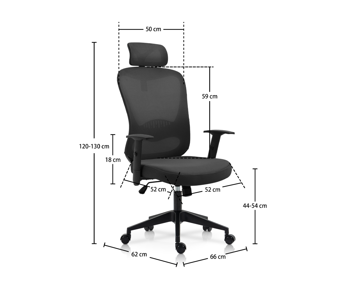 -Størrelse: W66*D62*H120-130 cm / Sh: 44-54 cm