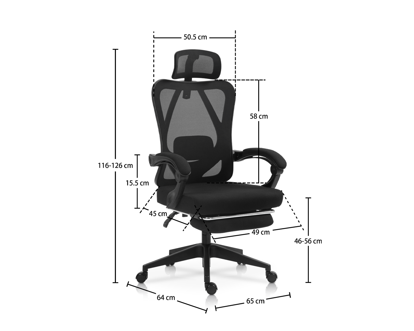 -Størrelse: W65*D64*H116-126 cm / Sh: 46-56 cm
