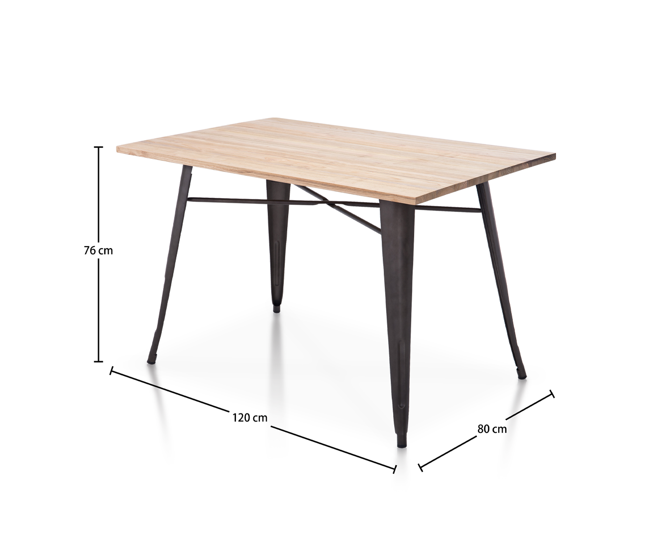 • Bordpladen er lavet af premium Elm Wood, kendt for sin holdbarhed og rige struktur. Den polerede finish fremhæver træets naturlige skønhed og tilføjer en følelse af varme og karakter til ethvert rum. Komplementering af træpladen er robuste jernben, færdige i en mat sort farve, der tilføjer et moderne og industrielt præg. Denne unikke blanding af materialer sikrer, at tabellen kan modstå daglig brug, mens det opretholder dets stilfulde udseende.