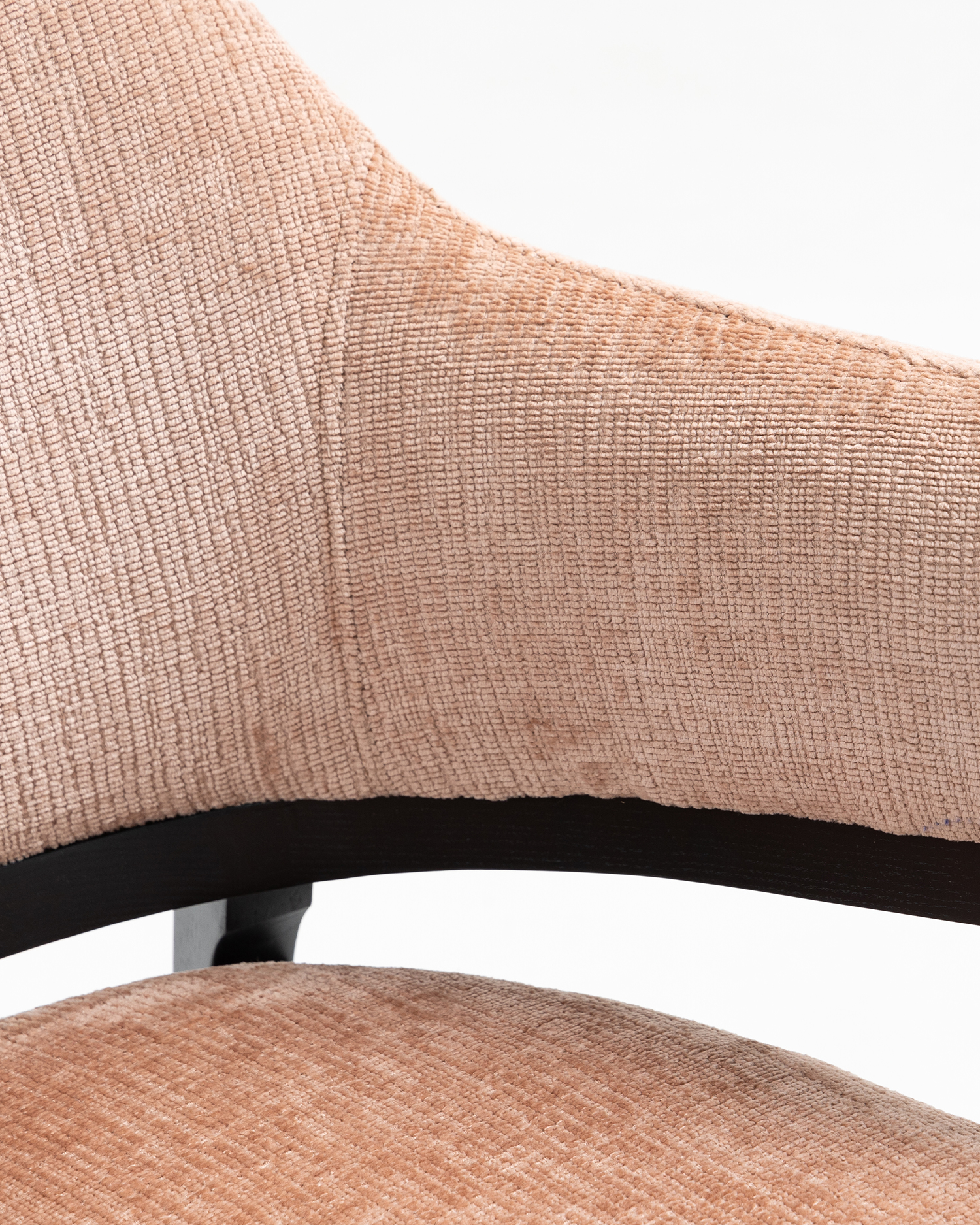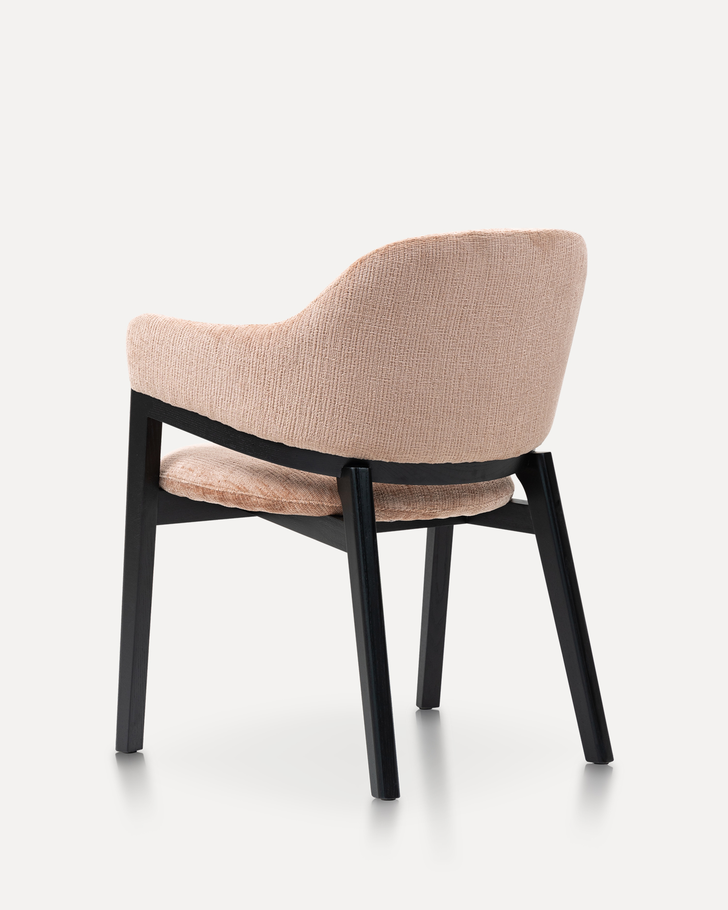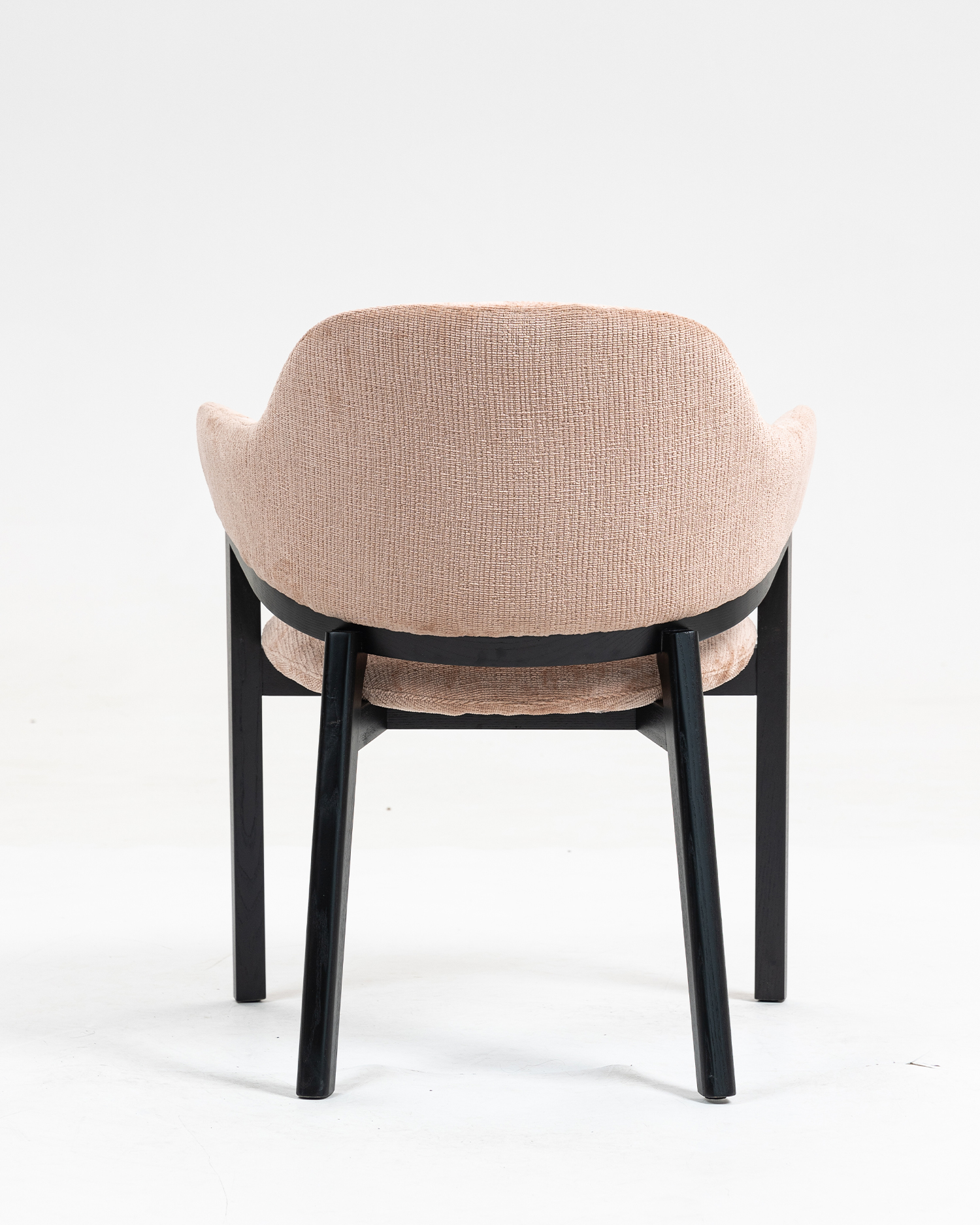 • Hver komponent i denne stol er blevet omhyggeligt udformet af dygtige kunsthåndværkere, hvilket sikrer, at den opfylder de højeste standarder for kvalitet og holdbarhed. Asketrærammen, der blev afsluttet i en slank sort farve, fremhæver materialets naturlige skønhed, mens den tilføjer et moderne touch. Det overdådige, polstrede sæde og ryglæn er lavet af blødt stof af høj kvalitet, der føles indbydende og behageligt.