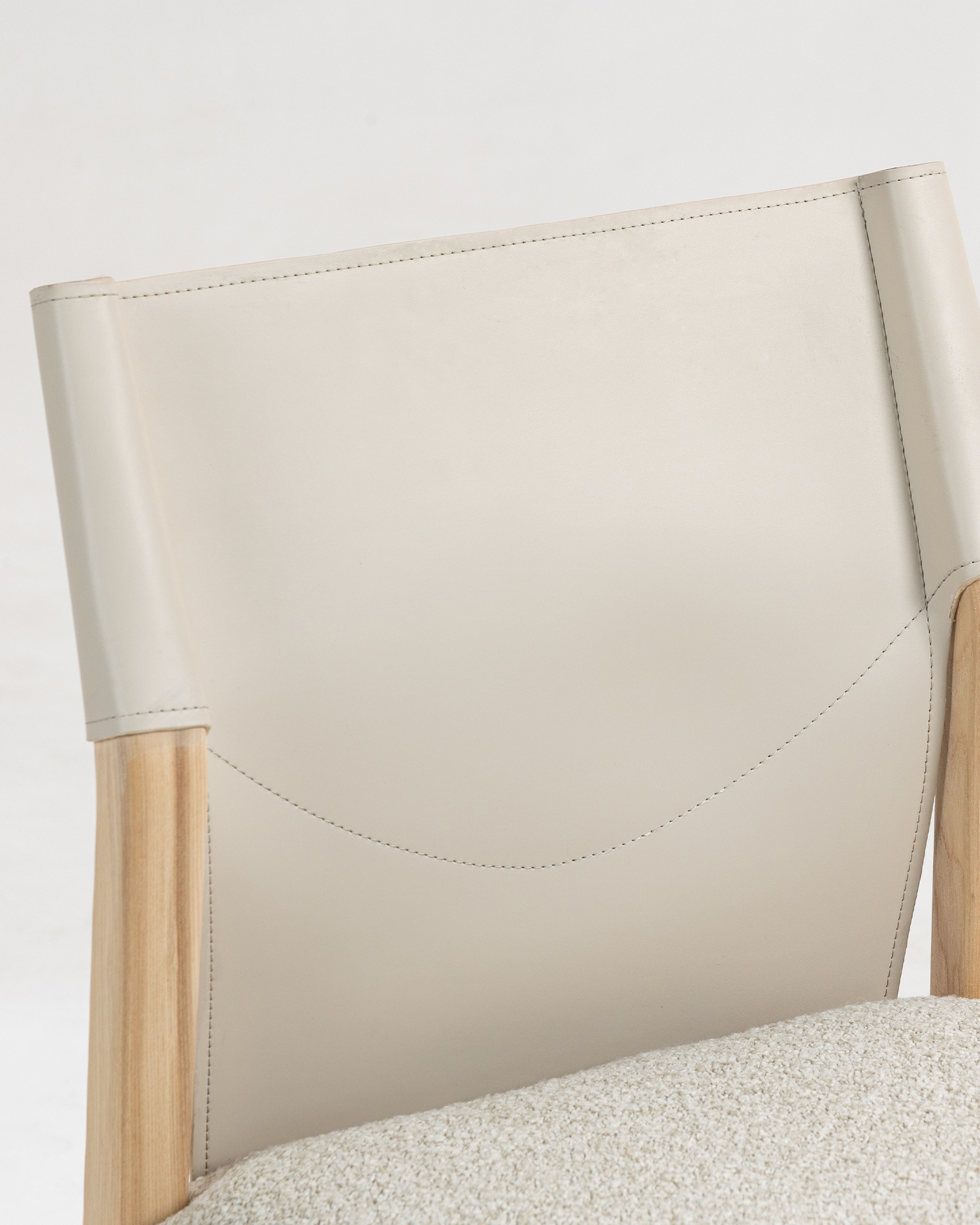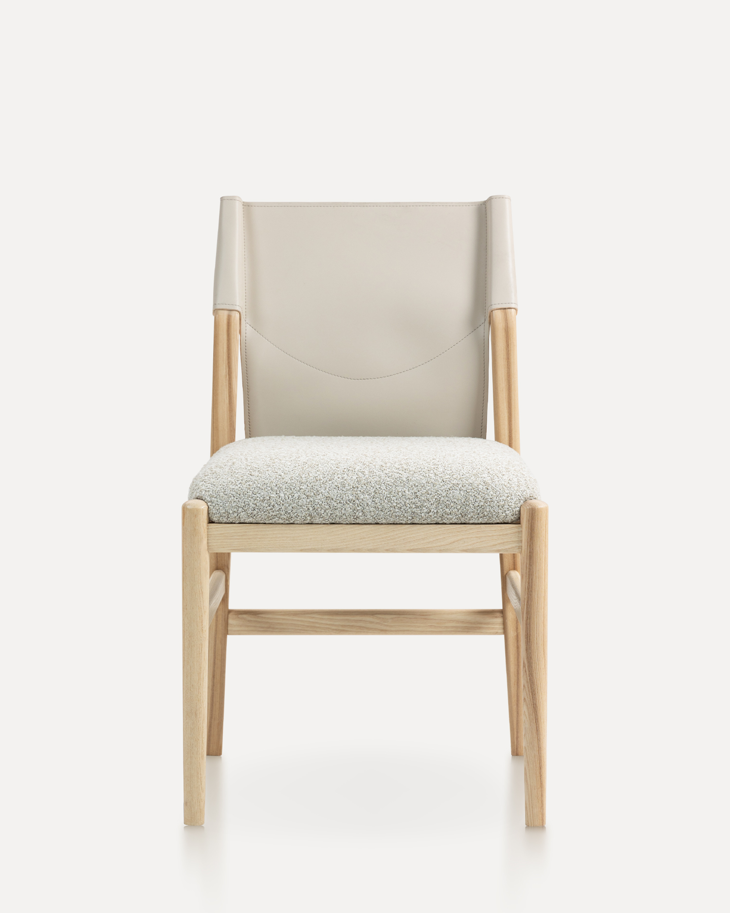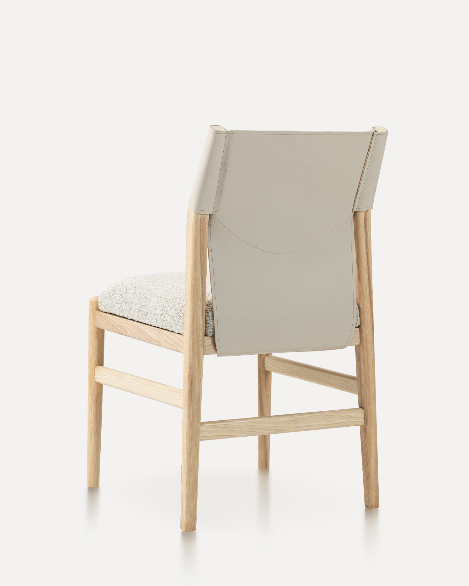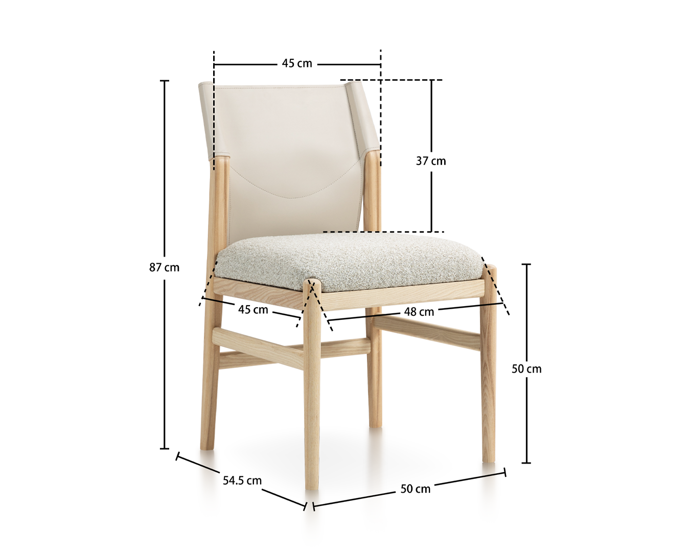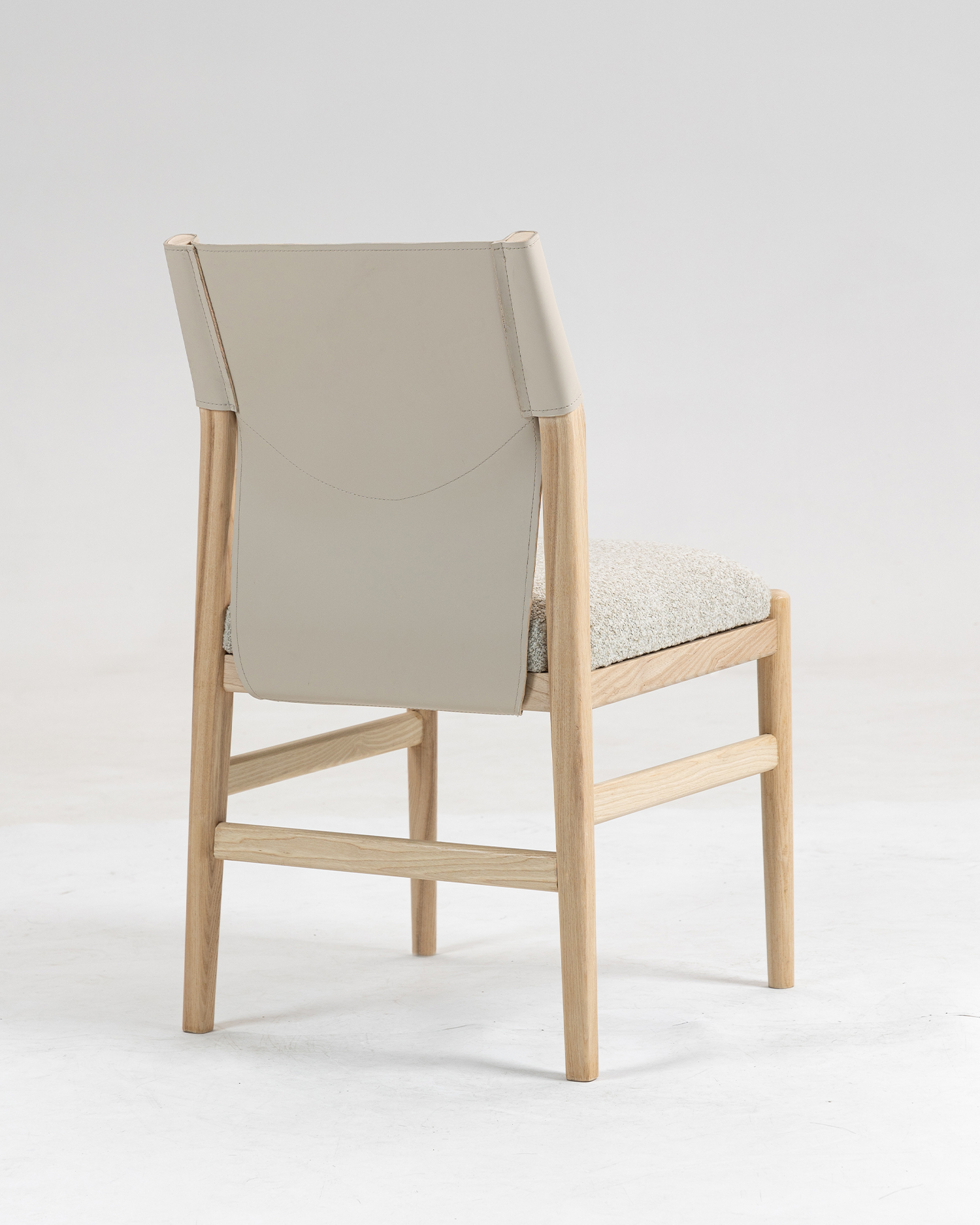 • Den ramme, der er udformet af asketræ af høj kvalitet, viser materialets naturlige skønhed og holdbarhed med dets glatte finish og subtile kornmønstre, der tilføjer varme til ethvert indvendigt rum. Sadel læderrygglæn giver et luksuriøst touch, der tilbyder både stil og support. Dens smidige struktur og rige farve supplerer stolens overordnede design, hvilket gør det til et ideelt valg for dem, der værdsætter fint håndværk.
