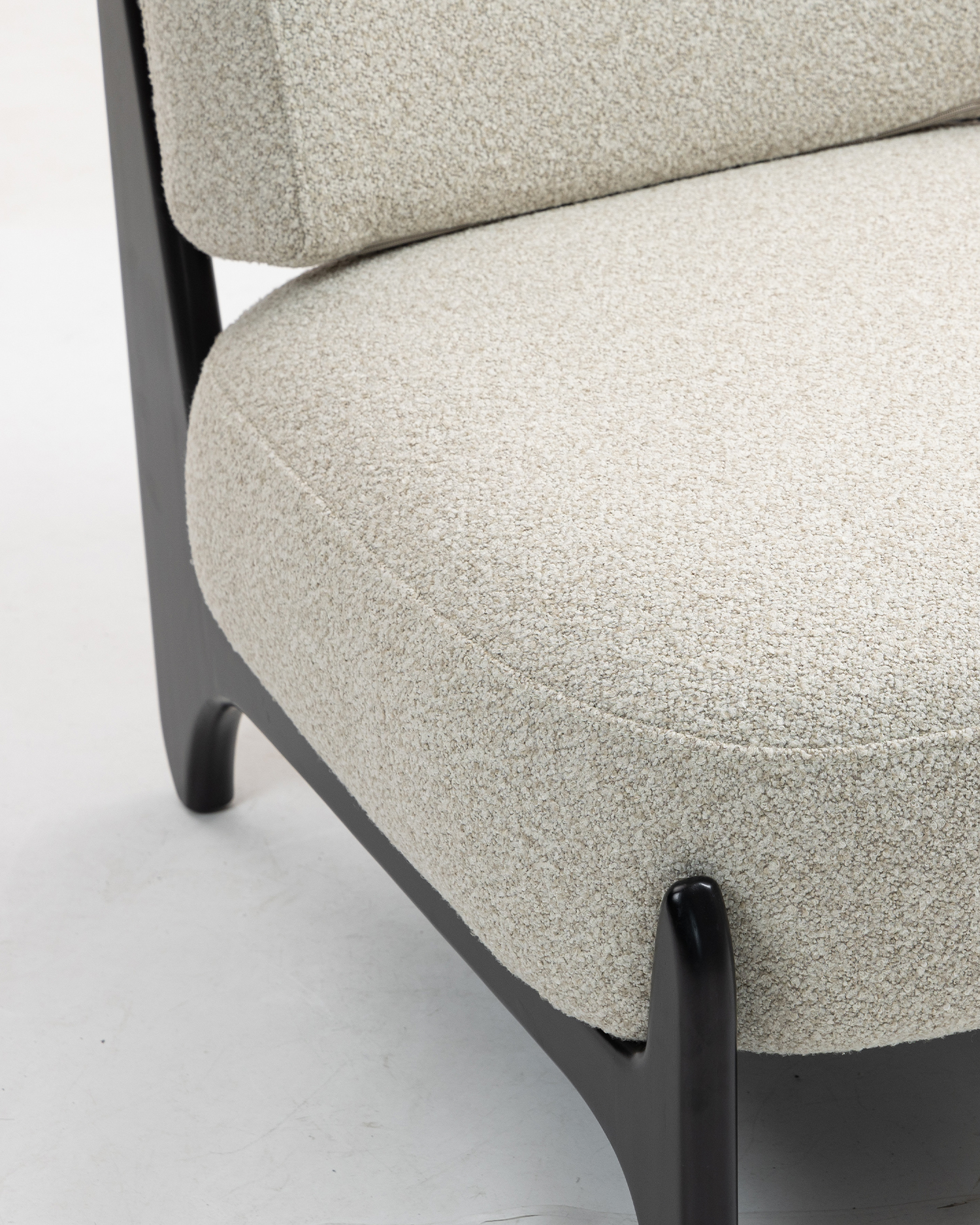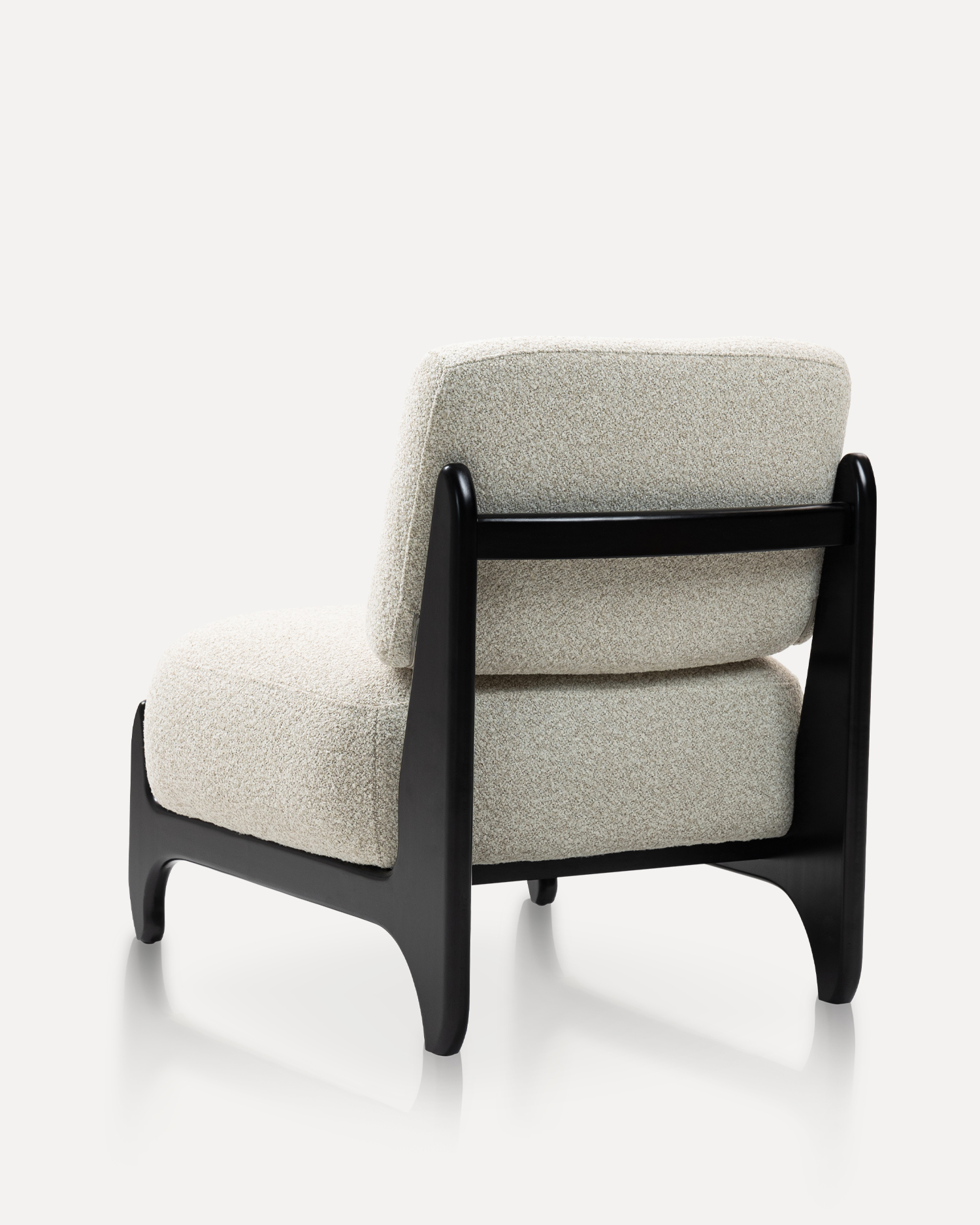 • Stolens ramme, lavet af premium gummi, kan prale af en glat sort finish, der udstråler sofistikering og holdbarhed. Det generøst polstrede sæde og ryglæn er polstret i et blødt, struktureret stof, der giver enestående komfort og støtte. Den unikke buede ryglæn og armlæn tilbyder et stilfuldt, men alligevel funktionelt design, så du kan læne dig tilbage og slappe af i den ultimative komfort.